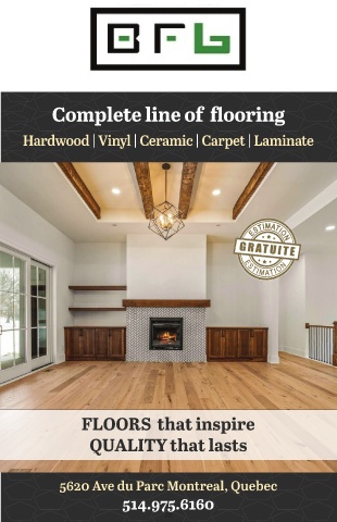 Complete line of flooring Hardwood | Vinyl | Ceramic | Carpet | Laminate FLOORS that inspire QUALITY that lasts 5620 Ave du Parc Montreal, Quebec 514.975.6160 38