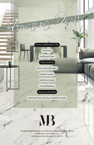 Amazing Deals Ceramic and Porcelain Tiles Vinyl Floors Hardwood Floors Toilets and Tubs Mirrors with LED Lights Kitchen Faucets Bat Bathroom Faucets Trims & Moldings Mosaics and Marbles New Slabs from Italy (9x4, available for walls) 18