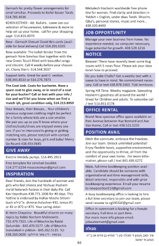 buch שליט’’א. shmiras halashon #32, tznius #1 send resume to cg5955bf@gmail.com