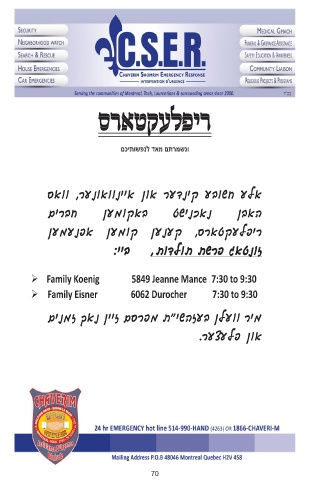 ➢ Family Koenig 5849 Jeanne Mance 7:30 to 9:30