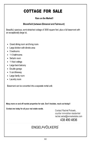Beautiful, spacious, semi-detached cottage of 3000 square feet, plus a full basement with