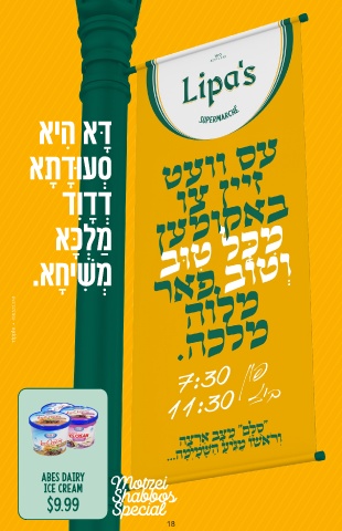 אי ִהִ א ָדָּ א ָתָ ָדָוּע ְסְ דִָוִָדְָדָ א ָכָּ ְלְ ַמַ .א ָחָי ִשִׁ ְמַ Abes Dairy Motzei ice cream Shabbos $9.99 Special 18