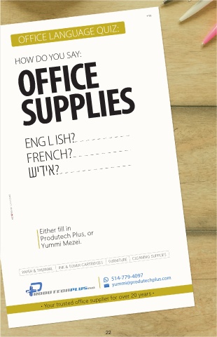 ” Either fill in Produtech Plus, or Yummi Mezei. PAPER & THERMAL INK & TONER CARTRIDGES FURNITURE CLEANING SUPPLIES yummi@produtechplus.com 514-779-4097 · Your trusted office supplier for over 20 years · 22
