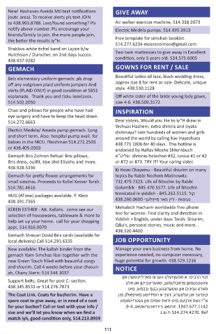 ah, Chany Stern: 514.544.3037 ןוא ןרעטכיילראפ וצ געוו עלעיצעפס א :םיברה יוכז