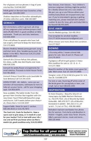 and shiurim. Call 4 weeks before your chasun- Golumbik - 845.470.5577. Life of Bitochin