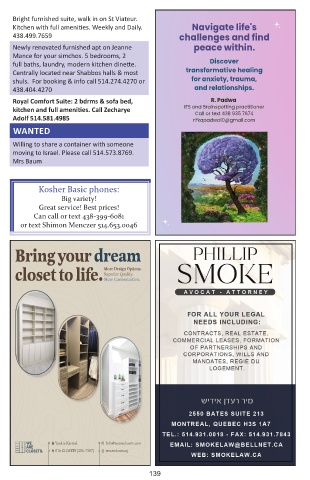 shuls. For booking & info call 514.274.4270 or for anxiety, trauma,