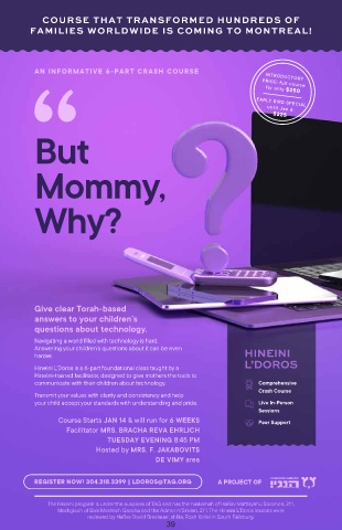 REGISTER NOW! 304.318.3399 | LDOROS@TAG.ORG A PROJECT OF Mashgiach of Bais Medrash Gavoha and the Admor m'Skulen, Zt"l. The Hineini L’Doros lessons were
