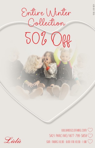Entire Winter 438-931-1818 Collection 50% Off lulukidsclothing.com 5421 Parc Ave/1877-799-5858 Sun -Thurs 10:30 - 6:00 Fri 10:30 - 1:00 1877 -799-5858 Sun -Thurs 10:30 - 6:00 Fri 10:30 - 1:00 lulukidsclothing.com