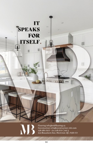 IT SPEAKS FOR ITSELF. Flooring:info@mbblooring.ca Construction:info@construction-mb.com 438.680.6977 • 514.418.6721 | ext.3 629 Beaumont Ave, Montreal, QC, H3N 1V7 84