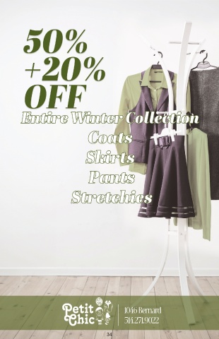 50% +20% OFF Entire Winter Collection Coats Skirts Pants Stretchies 1046 Bernard 514.271.9022 34