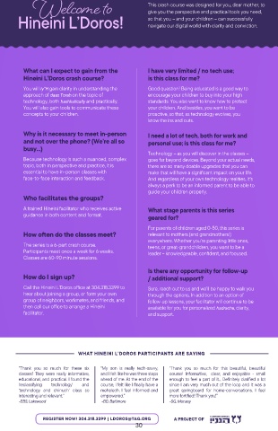 'technology and chinuch' class so mehalech. I feel informed and great springboard for home-conversations. I feel
