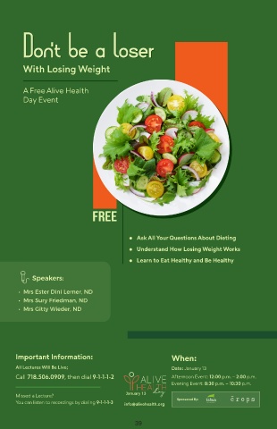 You can listen to recordings by dialing 9-1-1-1-3 info@alivehealth.org Sponsored By: