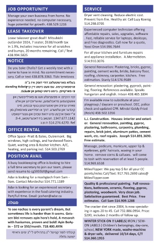 sary. Call or text 438.878.3363. Tizki lemitzvos roofing, chimney, carpenter, kitchen. Free