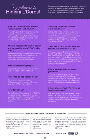'technology and chinuch' class so mehalech. I feel informed and great springboard for home-conversations. I feel