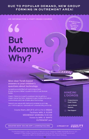 Hineini L’Doros is a 6-part foundational class taught by a L’DOROS