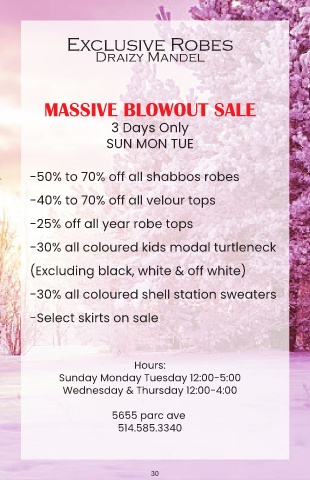 -50% to 70% off all shabbos robes Gitty, 15 years old