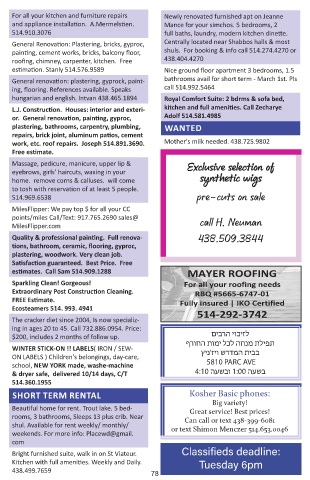 and appliance installation. A.Mermelstien. Mance for your simchos. 5 bedrooms, 2