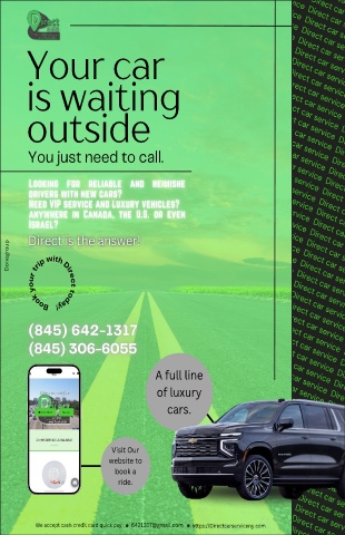 Your car is waiting outside You just need to call. Donegroup Book your trip with Direct today! A full line of luxury cars. Visit Our website to book a ride. 34 We accept cash credit card quick pay 6421317@gmail.com https://Directcarserviceny.com