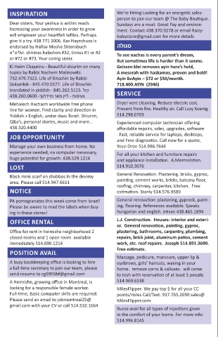Yiddish + English, under daas Torah. Shiurim, 514.298.0705