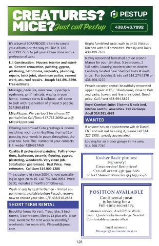 pointments available before Pesach, reserve POSITION AVAILABLE