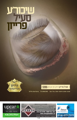 ע׳רוכיש ליעס ןזיירפ $999 ןופ ןא ךיז ןבייה ןזיירפ ליעס 187 Av. Van Horne 514.948.3993 Sun - Thu. 5:00 - 7:00 Fri. 10:00 - 12:00 514-223-8705 5999 Parc Ave www.artecplanchers.ca Ceramic // Vinyl // Hardwood // Laminate 134