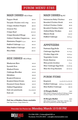 Preorder for Purim by: Monday, March 10 5:00 PM