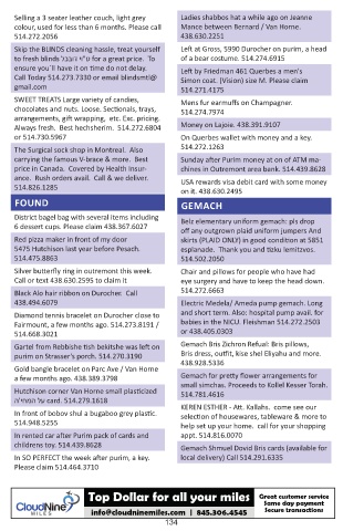 Hutchison corner Van Horne small plasticized small simchas. Proceeds to Kollel Kesser Torah.