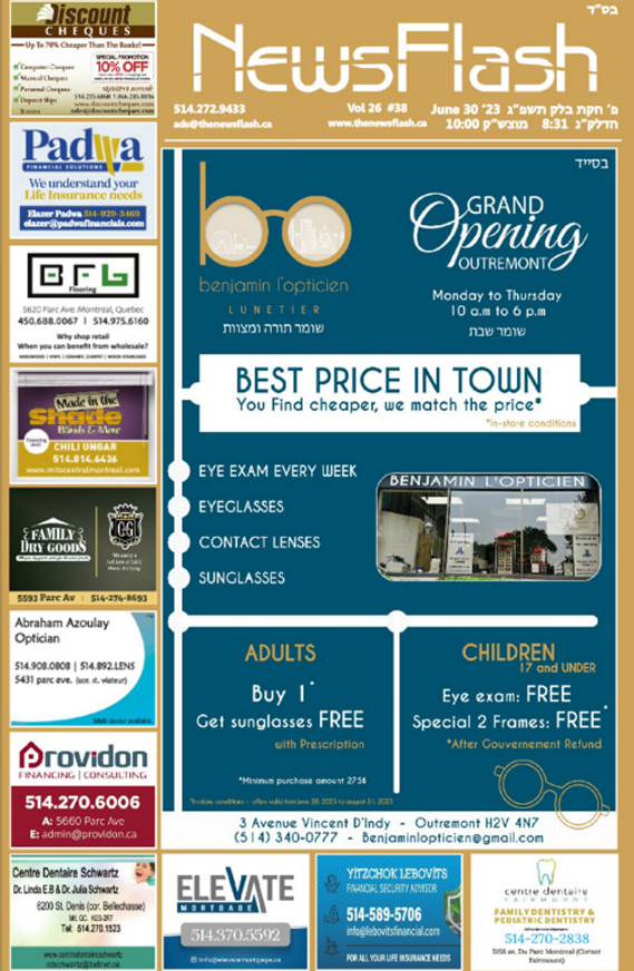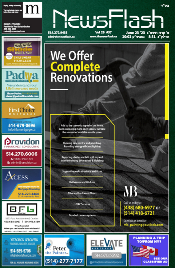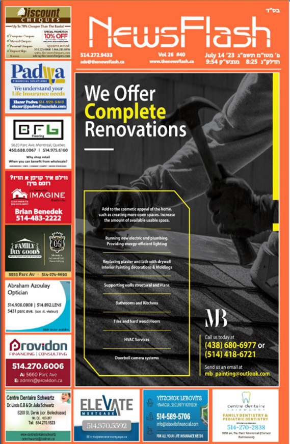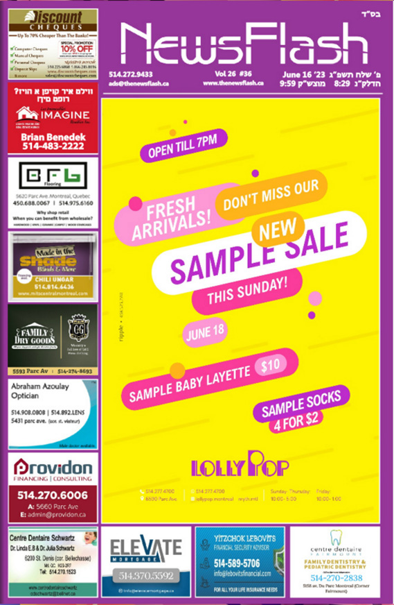 The News Flash a glossy, full color attractive publication, is really appealing to the eye, and enjoyed by young and old, allowing readers to fully connect with the community and it’s environs. Our reader stake a few minutes from their hectic schedule and busy erev Shabbos to relax and enjoy the attractive ads. There is no better place to be seen!