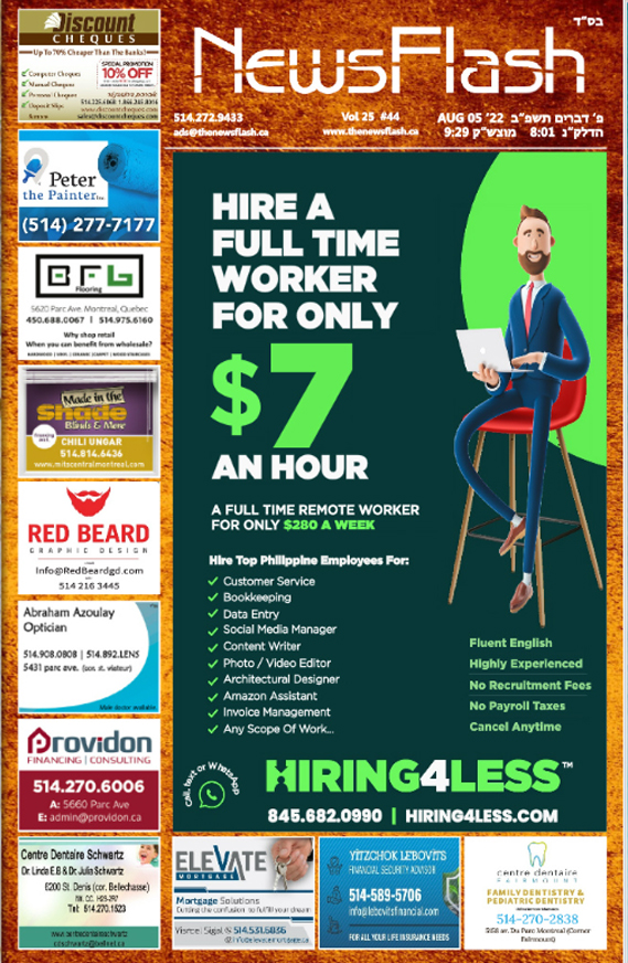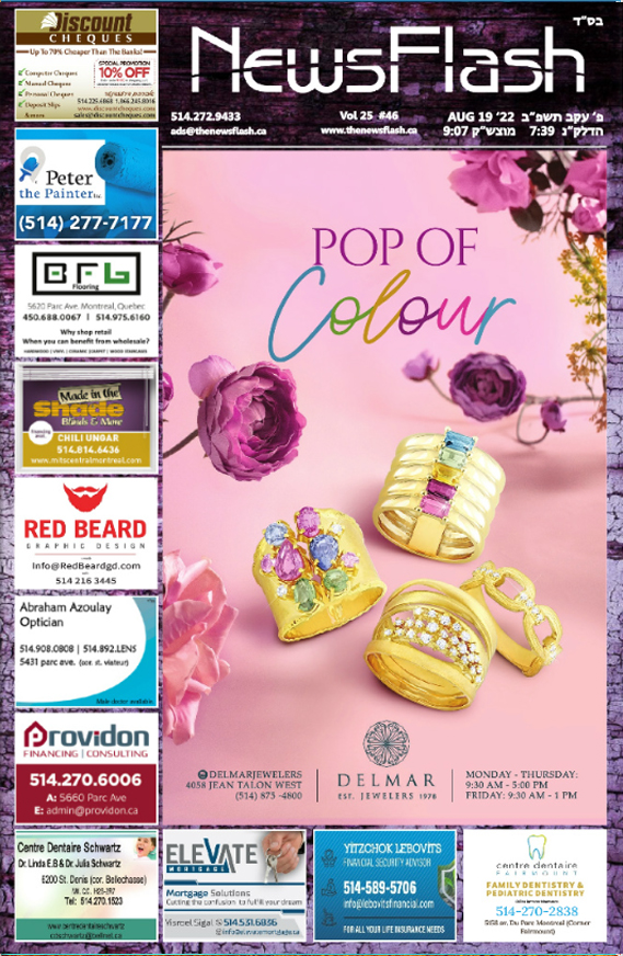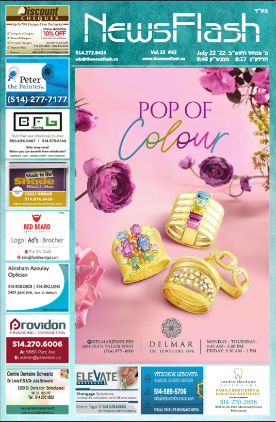 The News Flash a glossy, full color attractive publication, is really appealing to the eye, and enjoyed by young and old, allowing readers to fully connect with the community and it’s environs. Our reader stake a few minutes from their hectic schedule and busy erev Shabbos to relax and enjoy the attractive ads. There is no better place to be seen!