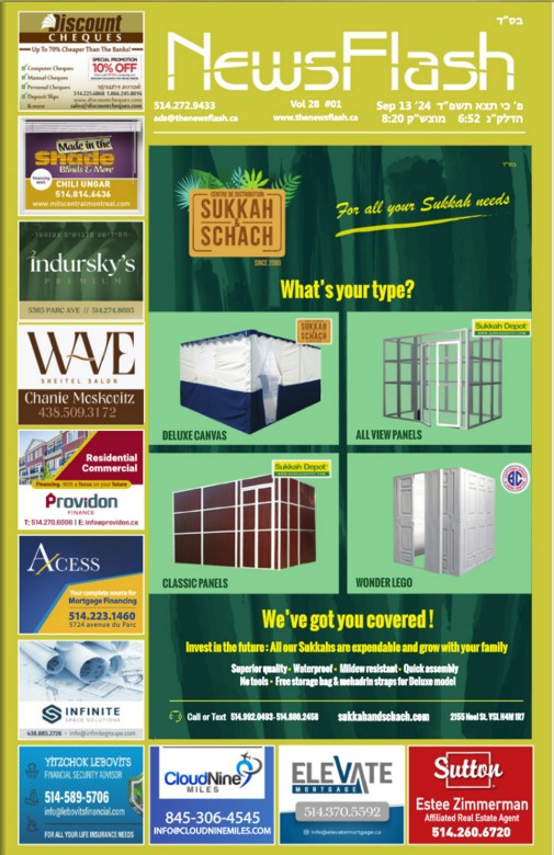 The News Flash a glossy, full color attractive publication, is really appealing to the eye, and enjoyed by young and old, allowing readers to fully connect with the community and it’s environs. Our reader stake a few minutes from their hectic schedule and busy erev Shabbos to relax and enjoy the attractive ads. There is no better place to be seen!