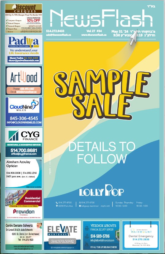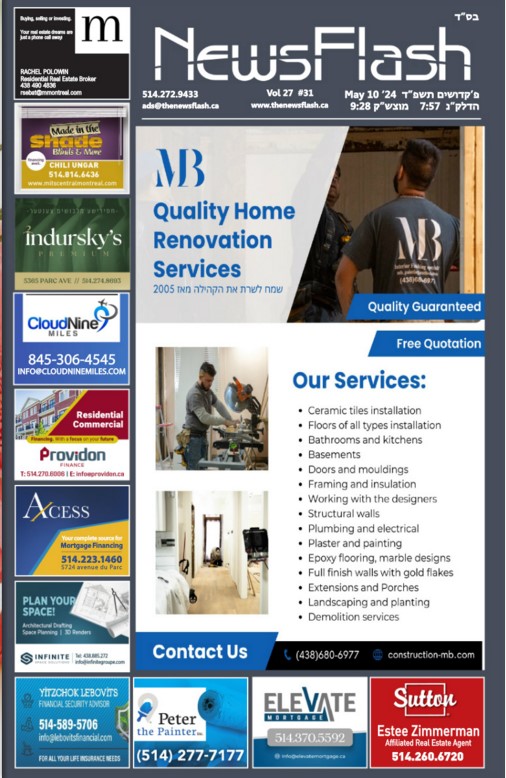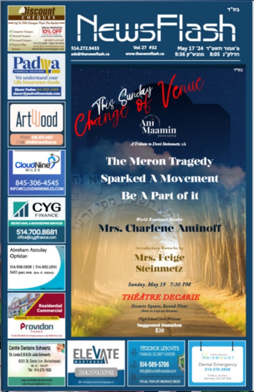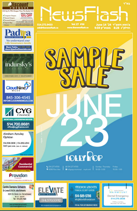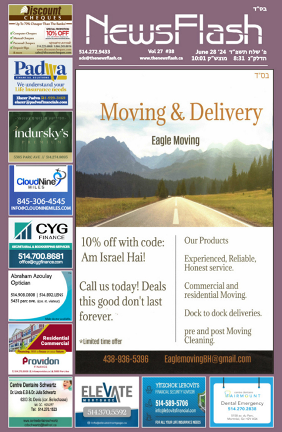 The News Flash a glossy, full color attractive publication, is really appealing to the eye, and enjoyed by young and old, allowing readers to fully connect with the community and it’s environs. Our reader stake a few minutes from their hectic schedule and busy erev Shabbos to relax and enjoy the attractive ads. There is no better place to be seen!
